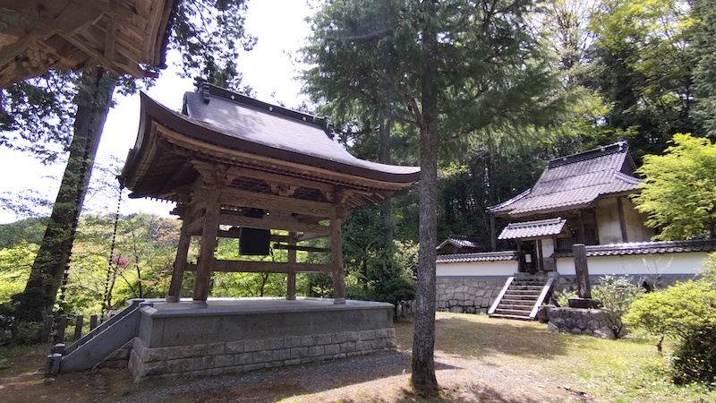 ここも観光ルートからは外れているためか、参拝者は誰もなく、長い参道をひとり本堂に向かいますと、春の陽気に誘われて、青大将がスルスルと道を横切りました。