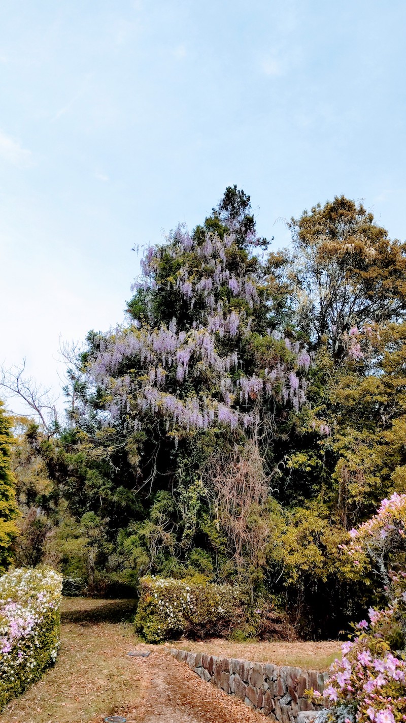 いかにも柔らかな青葉が芽吹き、数々の花が咲き、鴬はじめ鳥がさえずり、池からは蛙の声が響くといったあんばいで、この自然と歴史が調和した空間が独占できる幸せに満足いたしました。
